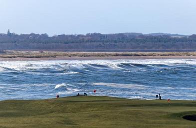 Keywords: golf golf course scenery waves sea beach shoreline blue green course grass sport sky game landscape recreation leisure outdoor flag teeing ground nature