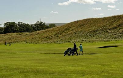 Keywords: golfers golf course bunker trap male female people golf golfing sport club person leisure course man recreation player summer green game hobby active activity outdoors playing sunny swing golf club