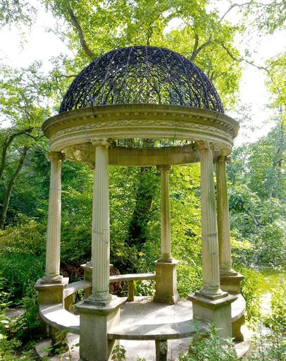 Keywords: gondola pillar nature outdoors stone scenic green forest tranquil park scenery architecture old foliage trees light