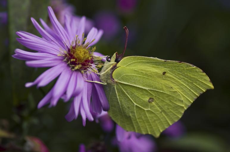 Keywords: gonepteryx rhamni butterfly autumn yellow green asters insect herbstaster garden