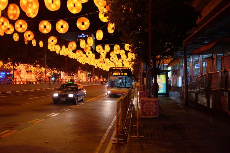 Keywords: eu tong sen street chinese coins lunar new year decor smrt bus chinatown night 2014 singapore public domain publicdomain Lunar New Year 2014 Lunar New Year 2014