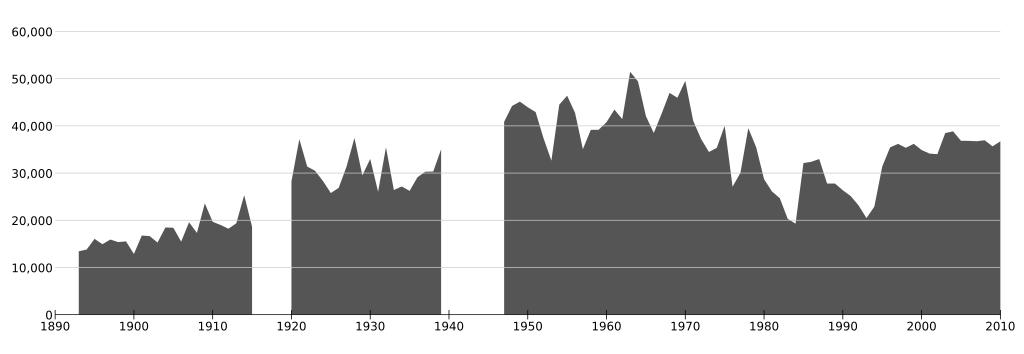 Keywords: Goodison-park-average-attendance.svg en A graph of the average yearly attendance at Goodison Park own Bryan burgers 2010-08-30 Source List of average attendances at Goodison Park Unidentified graphs Line charts