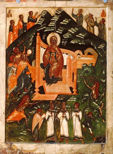 | Keywords: Собор Богоматери - Google Art Project.jpg Artwork Q18683173 RusIcon П аздник Собо а Богомате и в п авославной т адиции отмечается на следующий день после Рождества Х истова Данная икона является самой анней с еди созданных на усской почве икон на тему ождественской стихи ы «Что ти п инесем Х исте яко явился еси на земли яко человек нас ади каяждо благода ение Тебе п иносят ангеле пение небеса звезду волсви да ы пасты и чудо земля ве теп мы же ате ь Дево » В цент е композиции п едставлена Богомате ь восседающая на т оне с изоб ажением Х иста Эммануила в восьмиконечной двухцветной славе Все пе сонажи изоб аженные на иконе в соответствии с текстом стихи ы п еподносят свои да ы В ве хних углах иконы небольшие изоб ажения Св иколая и Св Па аскевы Ст астная темпе аментная живопись коло ит пост оенный на сочетании темно-зеленых изум удных тонов с ко алловыми и ко ичневыми белильные п обела положенные эне гичными мазками дают наилучшее п едставление о псковской живописи конца XIV начала XV века Late 14 - beginning of the 15th century Tempera wood cm 81 61 Institution Tretyakov Gallery 58 object history credit line accession number YAFnQkfTXJi19Q PD-old-100 http //www tretyakovgallery ru/ru/collection/_show/image/_id/2608 Google Art Project works in The State Tretyakov Gallery Synaxis of the Theotokos 14th-century icons in the Tretyakov Gallery 15th-century icons in the Tretyakov Gallery Google Art Project works by unknown artist Russia |