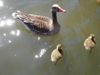 Keywords: goose geese goose family water swim chicks goslings birds lake
