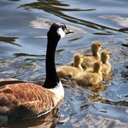 Keywords: goose geese mother goose goslings nature bird wildlife waterfowl water canadian goose swimming pond babies swim lake waterbird