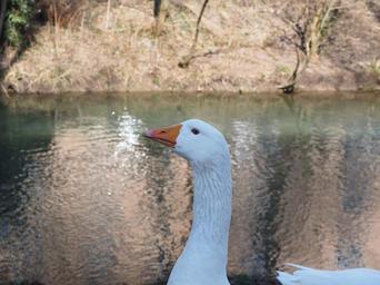 Keywords: goose head neck bill animal white livestock bird poultry domestic goose bank river riverside