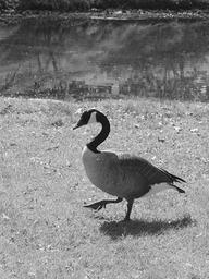 Keywords: Goose Step (Branta canadensis).jpg en A Canada goose Branta canadensis walking showing the derivation of the term goose step for the military marching step 2015-05-06 10 36 07 own Cbaile19 other versions cc-zero Uploaded with UploadWizard Goose step Branta canadensis |