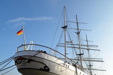Keywords: gorch fock 1 sailing vessel mast masts port ship sail sailing boat sea boats three masted