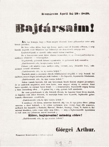 Keywords: Görgei kiáltvány 1848 04-29.jpg Görgei Artúr kiáltványa a hadsereghez Komárom 1849 április 29 scanned by uploader 1849-04-29 Artúr Görgei PD-old Documents of the Hungarian revolution and war of independence in 1848 “49 1849 documents Artúr Görgei |