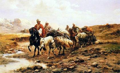 Keywords: Gorstkin Wywiórski Tabor kozacki 1890.jpg Artwork Creator Michał Gorstkin Wywiórski pl Tabor kozacki 1890 oil canvas cm 65 105 private collection object history credit line accession number http //www pinakoteka zascianek pl/Wywiorski/Index htm pinakoteka zascianek pl PD-old-auto-1923 1926 Michał Gorstkin Wywiórski Russian Cossacks in art 1890 paintings Paintings of Cossack men on horseback |