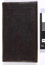 Keywords: GOSPEL according to St. Luke, in Latin, in the vulgate version, with the Glossa Ordinaria (of Walafridus Strabus) and Interlinearis (of Auselin of Laon). Preceded by the usual argument "Luca - Upper cover (Add Ms 35167).jpg Style Single tools design Lozenge or diamond Romanesque; Caption Upper cover; Colour Brown; Edge Unspecified exhibition history Decorative Technique Tooled in blind; Cover Material Goatskin includes morocco turkey etc The covers are divided into compartments by bands adorned with eight-lobed rosettes The centre device on the front is a lozenge-shaped panel of reticulated cable work enclosing a round stamp of a winged bull on the back an eight-lobed rose each lobe being an impression of a dragon Other stamps disposed in rows include two cockatrices addorsed their tails entrailed in a fleur-de-lys a warrior on horse- back a warrior kneeling a bird feeding across a curved bough a bird passing beneath two straight boughs a hound feeding leaves etc Cf Catalogue of Bookbindings in the National Art Library S Kensington 1894 English Rubbings nos 6 9 where some of these stamps reappear 11 X 7 in object history Text 13c; England; Unspecified object type Cc-zero place of creation Binding England place of discovery Unspecified British Library image http //www bl uk/catalogues/bookbindings/LargeImage aspx RecordId 020-000016327 ImageId ImageId 55704 Copyright BL GOSPEL according to St Luke in Latin in the vulgate version with the Glossa Ordinaria of Walafridus Strabus and Interlinearis of Auselin of Laon Preceded by the usual argument Lucas Syrus Antiocenus to fastidieritibus prodesse Vellum manuscript; ff 76 Written in England in the XIITh century Uploaded with GWToolset GOSPEL according to St Luke in Latin in the vulgate version with the Glossa Ordinaria of Walafridus Strabus and Interlinearis of Auselin of Laon Preceded by the usual argument Luca - Upper cover Add Ms 35167 http //www webarchive org uk/bldatasets/bindings/Add35167 jpg Bookbinding 13th-century bookbinding British Library Bookbindings Taken with Phase One P45+ |