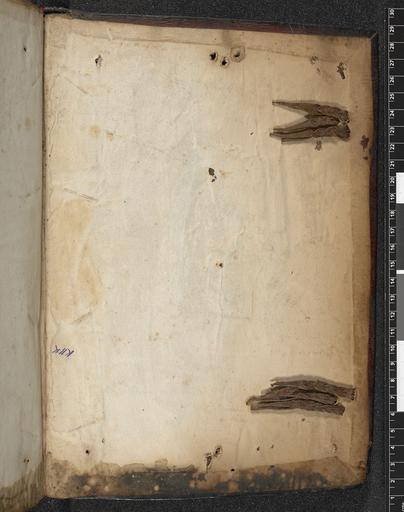 Keywords: Gospel Lectionary (Gregory-Aland l 1496 =-l 461-=- l 1206-) - Lower cover, inside. (Add MS 37008).jpg Style Panel design Fleur de lis Byzantine; Caption Lower cover inside ; Colour Red; Edge Unspecified exhibition history Decorative Technique Tooled in blind; Cover Material Goatskin includes morocco turkey etc Binding Stamped red leather binding 15th cent with remains of silver bosses and clasps and pins which protrude from the boards and remains of leather clasp attachment Origin Eastern Mediterranean Berat created at the Monastery of St Marina in 1413 object history Text 1413; Unspecified; Unspecified object type Cc-zero place of creation Binding Eastern Mediterranean place of discovery Unspecified British Library image http //www bl uk/catalogues/bookbindings/LargeImage aspx RecordId 020-000019578 ImageId ImageId 57802 Copyright BL Gospel Lectionary Gregory-Aland l 1496 l 461 l 1206 Uploaded with GWToolset Gospel Lectionary Gregory-Aland l 1496 l 461 l 1206 - Lower cover inside Add MS 37008 http //www webarchive org uk/bldatasets/bindings/add_ms_37008_fbrigr jpg Bookbinding 15th-century bookbinding British Library Bookbindings Taken with Phase One IQ140 |