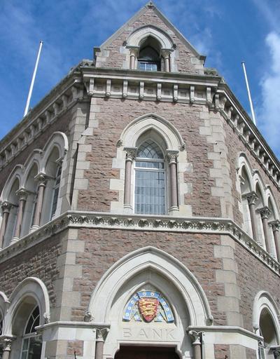 | Keywords: Gothic revival bank Jersey architecture.jpg Bank building in Library Place St Helier Jersey - built 1873 architect John Hayward architect for Jersey Banking Company Style Venetian Gothic Revival in granite - Jersey arms over door own 2006-05-09 Man vyi Gothic revival architecture Victorian architecture in Jersey Banks in Jersey Office buildings in Saint Helier Jersey Granite buildings in Jersey Columns in Jersey | ||||
