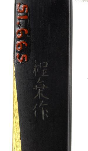 | Keywords: Gotô Etsujô - Kozuka with Scroll and Prayer Beads - Walters 51665 - Mark A.jpg This kozuka shows a scroll intertwined with prayer beads The scroll is likely a Buddhist sutra or other religious text The reverse is partially a copper alloy and partially gold between 1642 1708 Edo shakudo gold copper cm 9 6 l accession number 51 665 22599 Henry Walters Baltimore date and mode of acquisition unknown Walters Art Museum Henry Walters Acquired by Henry Walters Signature Teijô saku Mitsukuni; Translation Made by Teijô Mitsukuni place of origin Kanazawa Japan Walters Art Museum license Kozuka in the Walters Art Museum Gotô Etsujô Media contributed by the Walters Art Museum needs category review |
