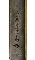 Keywords: Gotô Ichijô - Kozuka with Kanzan and Jittoku - Walters 51686 - Mark A.jpg Kanzan Ch Hanshan Hanshan and Jittoku Ch Shide Shih Te are a pair of Zen eccentrics who lived at a monastery on Mt Tendai in China during the Tang T'ang period 618-907 They spoke to each other in a nonsense language that no one else understood Kanzan is always shown holding a scroll which he is explaining to Jittoku Jittoku carries a broom because he worked cleaning the monastery kitchen Kanzan stands in front with his scroll and Jittoku is behind holding a bucket His broom lays on the ground between 1824 1862 Edo-Meiji shakudo gold silver and copper cm 9 8 l accession number 51 686 6862 Henry Walters Baltimore date and mode of acquisition unknown Walters Art Museum Henry Walters Acquired by Henry Walters Signature Gotô Hôkyô Ichijô place of origin Edo present-day Tokyo Japan Walters Art Museum license Kozuka in the Walters Art Museum Gotô Ichijô Media contributed by the Walters Art Museum needs category review |