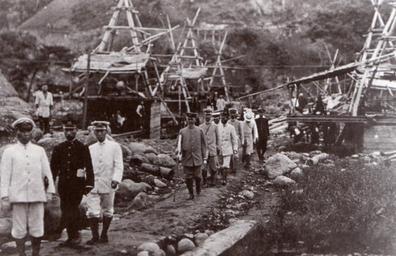 Keywords: Goto Shimpei visiting Amarube bridge construction site.jpg en en Gotō Shinpei 4th person from left was visiting the construction site of Amarube viaduct ja 後藤新平(左から4番目)が余部橋梁建設現場を視察している様子 scanned from p 15 of Amarube bridge / 香美町発行 余部鉄橋 15ページよりスキャン author 1910-09- The photo was taken in 1910 therefore under old copyright law of Japan the copyright of the photo had already expired PD-Japan-oldphoto Black and white group photographs of men Photographs of Gotō Shinpei Amarube railway bridge |