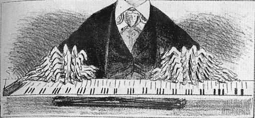 | Keywords: Gottschalk Tremolo 1869.tif Caricature illustration of Louis M Gottschalk's rapid fingering on the piano for his piece Tremolo 1869 Tremolo 1869 Henrique Fleiuss Semana Illustrada Rio de Janeiro 04/07/1869 Via http //www gottschalk fr/Galerie_eng html 1869-07 Henrique Fleiuss PD-Old 1869 cartoons Music in 1869 1869 in Brazil Caricatures of musicians Louis Moreau Gottschalk Fingers in art Henrique Fleiuss | ||||
