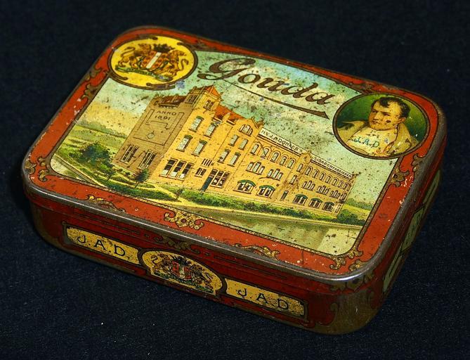 Keywords: Gouda sigaren blikje, foto2.JPG Very old packaging of a Dutch product that is not produced and/or not sold any more own 2014-03-16 13 27 39 Alf van Beem CC-Zero Trademarked Gouda cigars Cigar tins