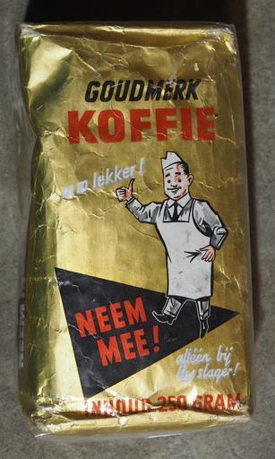 Keywords: Goudmerk Koffie.JPG Old product/brand of a Dutch company that does not excist anymore Goudmerk Koffie own 2013-03-16 13 12 06 Alf van Beem CC-Zero Trademarked Coffee in the Netherlands Nostalgia by Alf van Beem