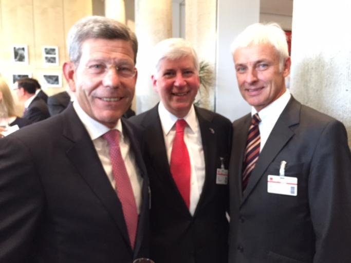 Keywords: groupshot people indoor Bernd Mattes, Chairman and CEO Ford of Europe Matthias Müller, Chairman and CEO VW Group Governor Rick Snyder Bernd Mattes, Chairman and CEO Ford of Europe Matthias Müller, Chairman and CEO VW Group Governor Rick Snyder |