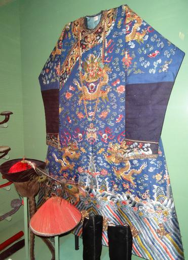 Keywords: Gown and hats - Chinese collection - Museum of Cultures (Helsinki) - DSC04845.JPG en Exhibit in the Museum of Cultures Helsinki Finland Photography was permitted in the museum without restriction Daderot 2012-08-16 04 31 40 Daderot cc0 cc0 China collection of the Museum of Cultures Helsinki