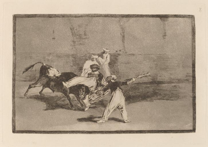 Keywords: Goya - Cogida de un moro estando en la plaza (A Moor Caught by the Bull in the Ring).jpg Artwork Creator Francisco de Goya y Lucientes in or before 1816 etching burnished aquatint and drypoint first edition impression Institution National Gallery of Art accession number 1943 3 1627 object history credit line 1943 3 1627 PD-old-100 Uploads by User Boo-Boo Baroo Prints by Francisco de Goya in the National Gallery of Art La Tauromaquia Tauromaquia |