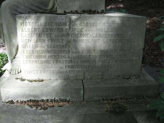 Keywords: Grab Feodora Fürstin zu Hohenlohe Langenburg, geb. Prinzessin von Leiningen, Sockelinschrift.JPG Grab der Fürstin Feodora zu Hohenlohe Langenburg geb Prinzessin von Leiningen auf dem Hauptfriedhof in Baden-Baden Sockelinschrift own 2011-04-28 Groth-Pfeifer at http //de wikipedia org de wikipedia PD-release Original upload log page de wikipedia Grab_Feodora_F C3 BCrstin_zu_Hohenlohe_Langenburg 2C_geb _Prinzessin_von_Leiningen 2C_Sockelinschrift JPG 2011-04-28 20 41 Groth-Pfeifer 1600×1200× 1147024 bytes <nowiki> Andere Versionen </nowiki> Princess Feodora of Leiningen Hauptfriedhof Baden-Baden |