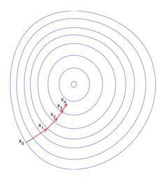 | Keywords: Gradient descent.svg An illustration of the gradient descent method I graphed this with Matlab Gradient_descent png 50 2012-08-07 19 02 UTC Gradient_descent png Olegalexandrov wikipedia en derivative work Zerodamage Vector version Zerodamage Gradient_descent png Source code <source lang matlab > Illustration of gradient descent function main the ploting window figure 1 ; clf; hold on; set gcf 'color' 'white' ; set gcf 'InvertHardCopy' 'off' ; axis equal; axis off; the box Lx1 -2; Lx2 2; Ly1 -2; Ly2 2; the function whose contours will be plotted N 60; h 1/N; XX Lx1 h Lx2; YY Ly1 h Ly2; X Y meshgrid XX YY ; f inline '- y+1 4/25+ x-1 4/10+x 2+y 2-1 ' ; Z f X Y ; the contours h 0 3; l0 -1; l1 20; l0 h floor l0/h ; l1 h floor l1/h ; v l0 1 5 h 0 0 h l1 0 8 0 888; c h contour X Y Z v 'b' ; graphing settings small 0 08; small_rad 0 01; thickness 1; arrowsize 0 06; arrow_type 2; fontsize 13; red 1 0 0; white 0 99 1 1 1; initial guess for gradient descent x -0 6498; y -1 0212; run several iterations of gradient descent for i 0 4 H text x-1 5 small y+small/2 sprintf 'x_ d' i ; set H 'fontsize' fontsize 'color' 0 1 1 1 ; the derivatives in x and in y the step size u -2/5 x-1 3-2 x; v -4/25 y+1 3-2 y; alpha 0 11; if i< 4 plot x x+alpha u y y+alpha v ; arrow x y x y+alpha u v thickness arrowsize pi/8 arrow_type 1 0 0 x x+alpha u; y y+alpha v; end end some dummy text to expand the saving window a bit text -0 9721 -1 5101 ' ' 'color' white ; text 1 5235 1 1824 ' ' 'color' white ; save to eps saveas gcf 'Gradient_descent eps' 'psc2' function arrow start stop thickness arrow_size sharpness arrow_type color Function arguments start stop start and end coordinates of arrow vectors of size 2 thickness thickness of arrow stick arrow_size the size of the two sides of the angle in this picture -> sharpness angle between the arrow stick and arrow side in radians arrow_type 1 for filled arrow otherwise the arrow will be just two segments color arrow color a vector of length three with values in 0 1 convert to complex numbers i sqrt -1 ; start start 1 +i start 2 ; stop stop 1 +i stop 2 ; rotate_angle exp i sharpness ; points making up the arrow tip besides the stop point point1 stop - arrow_size rotate_angle stop-start /abs stop-start ; point2 stop - arrow_size/rotate_angle stop-start /abs stop-start ; if arrow_type 1 filled arrow plot the stick but not till the end looks bad t 0 5 arrow_size cos sharpness /abs stop-start ; stop1 t start+ 1-t stop; plot real start stop1 imag start stop1 'LineWidth' thickness 'Color' color ; fill the arrow H fill real stop point1 point2 imag stop point1 point2 color ; set H 'EdgeColor' 'none' else two-segment arrow plot real start stop imag start stop 'LineWidth' thickness 'Color' color ; plot real stop point1 imag stop point1 'LineWidth' thickness 'Color' color ; plot real stop point2 imag stop point2 'LineWidth' thickness 'Color' color ; end function ball x y r color Theta 0 0 1 2 pi; X r cos Theta +x; Y r sin Theta +y; H fill X Y color ; set H 'EdgeColor' 'none' ; plot2svg must be retrieved from http //www zhinst com/blogs/schwizer/ plot2svg; </source> Contour lines Gradient descent Optimization Images with Matlab source code |