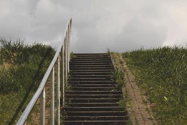 Keywords: gradually stairs dike grass railing metal cold clouds freedom