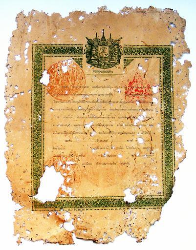 Keywords: Graduate in Siam Buddhist theology degree (1910).jpg ประกาศนียบัตรกระทรวงธรรมการ ตั้ง ปรียญธรรม ๓ ประโยค ปี พ ศ ๒๔๕๓ แก่พระกัน วัดสระ กษ พบที่ วัดคุ้งตะ ภา บ้านคุ้งตะ ภา ตำบลคุ้งตะ ภา อำ ภอ มืองอุตรดิตถ์ จังหวัดอุตรดิตถ์ ืมื่อวัน ๒ ธันวาคม ๒๕๕๑ <center> ข้อความในประกาศนียบัตรกระทรวงธรรมการ สะกดตามตัวสะกด ดิม </center> บรรทัด 1 - ศุภมัสดุ พระพุทธสาสนกาล ปนอดีตภาคล่วงแล้ว ๒๔๕๓ พรรษา รัตนโกสินทรศก ๑๒๙ บรรทัด 2 - พระบาทสม ด็จพระปร มนทรมหาวชิราวุธพระมงกุฎ กล้า จ้าอยู่หัว ู้ ปนพระบรมพุทธสาสนูปถัมภก บรรทัด 3 - มีพระราชประสงค์จะให้พระปริยัติสัทธรรม จริญรุ่ง รืองสืบอายุพระพุทธสาสนานาน นื่องไป จึงโปรดให้อาราธนา บรรทัด 4 - พระ ถรานุ ถระที่มีปรีชาญาณแตกฉานในพระไตรปิฎกธรรม มีสม ด็จพระ จ้าบรมวงศ์ ธอกรมพระยาวิชรญาณ บรรทัด 5 - วโรรส ปนอธิบดี กับมีพระวรวงศ ธอกรมหมื่นชินวรสิริวัฒน์ และสม ด็จพระพุทธโฆษาจารย์ สม ด็จ บรรทัด 5 - พระมหาวรวงศ ปนแม่กองประโยค วัดพระศรีรัตนศาสดาราม พร้อมด้วย จ้าพนักงานกระทรวงธรรมการ บรรทัด 7 - มี จ้าพระยาวิชิตวงศ์วุฒิไกร ปนหัวหน้า ในการสอบไล่พระปริยัติธรรมพระภิกษุสาม ณร ตามปริวัตรวิธี บรรทัด 8 - พระกัน วัดสระ กษ พรรษา ๒ อายุ ๒๒ บรรทัด 9 - ศิษย์ นายโห้ แปลได้ในคราวนี้ ๑ ประโยค ได้ประโยค ๓ ปนอย่างสูง บรรทัด 10 - มื่อวันที่ ๓ ดือน กุมภาพันธ์ รัตนโกสินทรศก ๑๒๙ จึงได้ให้ประกาสนียบัตรนี้ บรรทัด 11 - ประทับตรา ู้ ปนอธิบดี และแม่กอง กับตรา สนาธรรมจักร์ ปนสำคัญ ประกาศความในhttp //www ratchakitcha soc go th/DATA/PDF/2454/D/2239 PDF ราชกิจจานุ บกษา รายนามพระสงฆ์สาม ณร ที่สอบไล่ได้ รัตนโกสินทรศก ๑๒๙ ซึ่งได้รับพระราชทานพัด ปรียญ ล่ม ๒๘ ๑๔ มกราคม ร ศ ๑๓๐ หน้า ๒๒๔๕ graduate in Siam Buddhist theology degree 1910 this degree meets at Wat Khung Taphao Ban Khung Taphao Khung Taphao subdistrict Mueang Uttaradit Uttaradit Province Thailand on December 2 2008 http //www ratchakitcha soc go th/DATA/PDF/2454/D/2239 PDF รายนามพระสงฆ์สาม ณร ที่สอบไล่ได้ รัตนโกสินทรศก ๑๒๙ ซึ่งได้รับพระราชทานพัด ปรียญ in Thai Royal Gazette 28 0 ก 2245 January 14 1911 由上傳 拍 Captured by uploader ภาพนี้ถ่ายโดย ู้อัพโหลด 2/12/2008 PD-TH-exempt/th PD-Art 333px derivative works Coat of Arms of Siam 1873-1910 variant svg Wat Khung Taphao Thai monk rank Script of Thailand Coats of arms of Siam 1873-1910 |