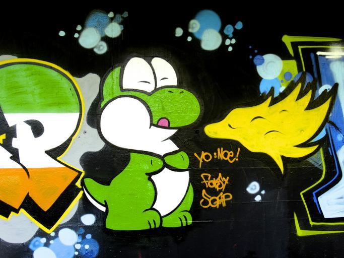 Keywords: graffiti color colorful decorative spray art creativity murals rebellion communication dinosaur