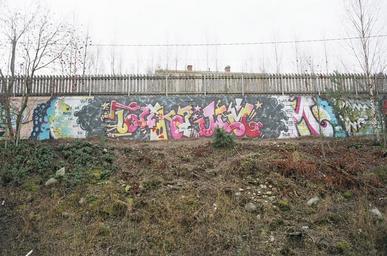 | Keywords: Graffiti in Santalahti 20121120 002.jpg en Graffiti alongside the Tampere-Seinäjoki railway in the Pispala/Santalahti area of Tampere Finland fi Graffiti Tampere-Seinäjoki-radan varrella Tampereen Pispalassa/Santalahdessa own Methem Mikko J Putkonen 2012-11-20 2012 in Tampere Abstract graffiti Graffiti in Tampere November 2012 in Finland Pispala Tampere “Seinäjoki railway Cc-zero | ||||