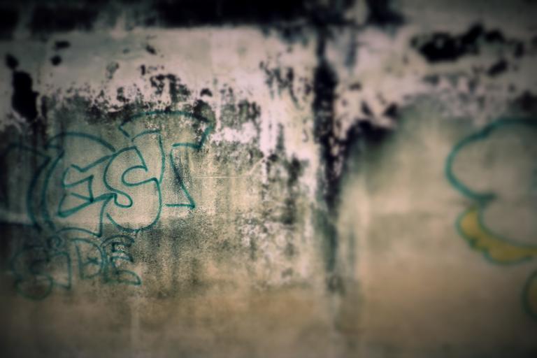 Keywords: graffiti vandalism urban city wall grunge beige gray green concrete damaged paint old material