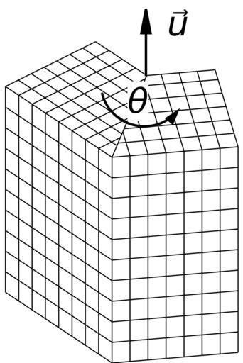 Keywords: Grain boundary tilt.svg en Tilt grain boundary 'u' is common metallographic axis for both grains Theta is rotation angle ru Разо иентация к исталлов с об азованием г аницы наклона u - ось азо иенти овки Тэта - угол азо иенти овки own MadCAD 2010-03-12 Г аницы зе ен и свойства металлов Кайбышев О А Валиев Р З еталлу гия 1987 214 с Grain boundary