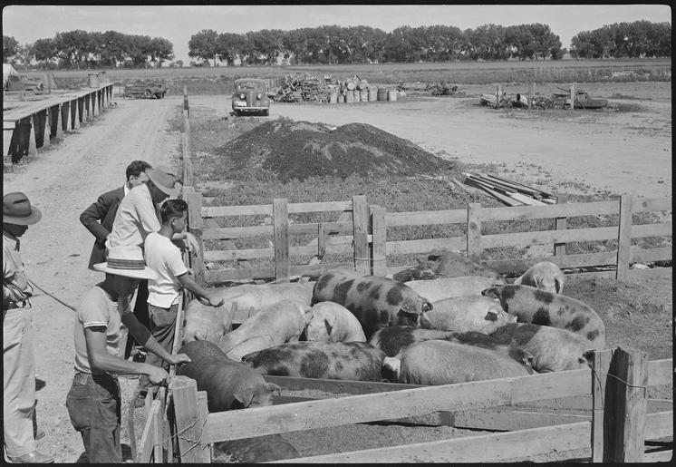 | Keywords: Granada Relocation Center, Amache, Colorado. Farm project hogs ready for shipment to the slaughter . . . - NARA - 537196.tif Scope and content The full caption for this photograph reads Granada Relocation Center Amache Colorado Farm project hogs ready for shipment to the slaughter house for butchering General notes 537196 Local identifier 210-G-B607 Department of the Interior War Relocation Authority 02/16/1944 - 06/30/1946 NARA-Author McClelland Joe War Relocation Authority photographer Photographer 8464457 <br /> Still Picture Records Section Special Media Archives Services Division NWCS-S National Archives at College Park 8601 Adelphi Road College Park MD 20740-6001 1943-06-04 Record group Record Group 210 Records of the War Relocation Authority 1941 - 1989 Record group ARC 537 Central Photographic File of the War Relocation Authority compiled 1942 - 1945 Series ARC 536000 File unit File unit ARC Variant control numbers NAIL Control Number NWDNS-210-G-B607 yes Other versions <gallery> File Granada_Relocation_Center _Amache _Colorado _Farm_project_hogs_ready_for_shipment_to_the_slaughter_ _ _ _-_NARA_-_537196 tif tif File Granada_Relocation_Center _Amache _Colorado _Farm_project_hogs_ready_for_shipment_to_the_slaughter_ _ _ _-_NARA_-_537196 jpg jpg </gallery> NARA-cooperation PD-USGov Granada War Relocation Center NARA TIF images with categorized JPGs |
