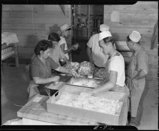 | Keywords: Granada Relocation Center, Amache, Colorado. Kitchen crew preparing pork chops for the evening meal . . . - NARA - 538745.jpg Scope and content The full caption for this photograph reads Granada Relocation Center Amache Colorado Kitchen crew preparing pork chops for the evening meal of the first volunteer worker arrivals at the relocation center General notes 538745 Local identifier 210-G-E82 Department of the Interior War Relocation Authority 02/16/1944 - 06/30/1946 NARA-Author Parker Tom Photographer 4682167 <br /> Still Picture Records Section Special Media Archives Services Division NWCS-S National Archives at College Park 8601 Adelphi Road College Park MD 20740-6001 1942-08-28 Record group Record Group 210 Records of the War Relocation Authority 1941 - 1989 Record group ARC 537 Central Photographic File of the War Relocation Authority compiled 1942 - 1945 Series ARC 536000 File unit File unit ARC Variant control numbers NAIL Control Number NWDNS-210-G-E82 Other versions <gallery> File Granada_Relocation_Center _Amache _Colorado _Kitchen_crew_preparing_pork_chops_for_the_evening_meal_ _ _ _-_NARA_-_538745 tif tif File Granada_Relocation_Center _Amache _Colorado _Kitchen_crew_preparing_pork_chops_for_the_evening_meal_ _ _ _-_NARA_-_538745 jpg jpg </gallery> NARA-cooperation PD-USGov Granada War Relocation Center |