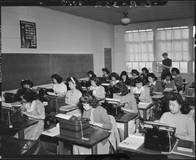 | Keywords: Granada Relocation Center, Amache, Colorado. High school typing class. - NARA - 539609.jpg Scope and content General notes 539609 Local identifier 210-G-G850 Department of the Interior War Relocation Authority 02/16/1944 - 06/30/1946 Still Picture Records Section Special Media Archives Services Division NWCS-S National Archives at College Park 8601 Adelphi Road College Park MD 20740-6001 1945-01-23 Record group Record Group 210 Records of the War Relocation Authority 1941 - 1989 Record group ARC 537 Central Photographic File of the War Relocation Authority compiled 1942 - 1945 Series ARC 536000 File unit File unit ARC Variant control numbers NAIL Control Number NWDNS-210-G-G850 Other versions <gallery> File Granada_Relocation_Center _Amache _Colorado _High_school_typing_class _-_NARA_-_539609 tif tif File Granada_Relocation_Center _Amache _Colorado _High_school_typing_class _-_NARA_-_539609 jpg jpg </gallery> NARA-cooperation PD-USGov Granada War Relocation Center |