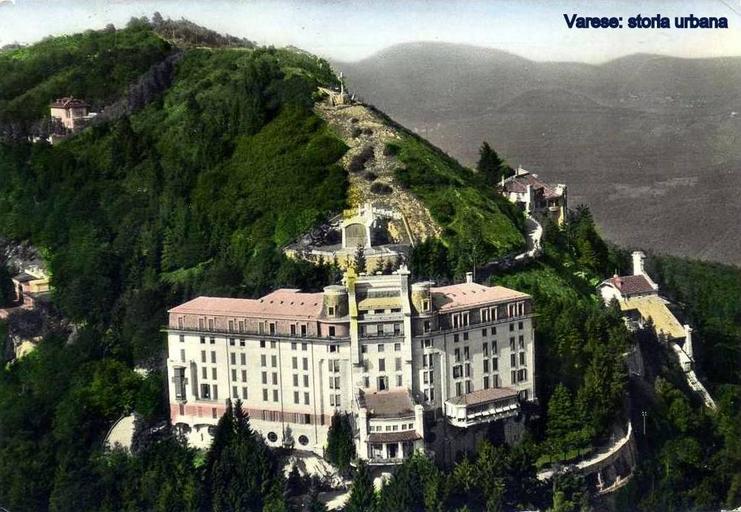 Keywords: Il complesso turistico del Campo dei Fiori. Al centro il Grand Hotel (terminato nel 1912) a destra la stazione a monte della funicolare e il Ristorante Campo dei Fiori (entrambe completate nel 1911). Tutte e tre le opere sono state progettate dall'arch. Giuseppe Sommaruga tra il 1908 e il 1910. In alto a sinistra, poco sotto le Tre Croci, l'edificio della colonia alpina Magnaghi. varese campodeifiori hotelcampodeifiori |