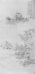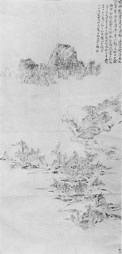 Keywords: Grand paysage au trait pur, 1846, par le peintre chinois Su Renshan, n° 23 inventaire 17.jpg fr Grand paysage au trait pur Papier 245x118cm Exécuté au Jing-er-gong-bo-shui-xie daté début automne 1846 signé La peinture est froissée doit être remontée Pièce majestueuse d'une saisissante originalité; le pinceau cherche délibérément à imiter le burin des graveurs pour produire un effet d'estampe; cette recherche élargie à une échelle aussi imposante crée un effet d'autant plus surprenant La vie et l'œuvre de Su Renshan Rebelle Peintre et Fou Auteur Pierre Ryckmans Éditeur Imprimerie Cathay Press Ltd Cahier 3 Hong Kong langue français mois septembre année 1970 Image 23 inventaire 17 Cahier 3 passage 125 et 197 Photo en N et B Creator Su Renshan 1846 PD-old-100 Su Renshan |