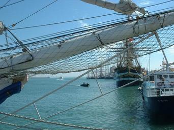 Keywords: Grandes veleros en Cadiz.jpg 27 Juli 2006 Sammeln für die Regatta zum 50-jährigen Jubiläum der Tall Ships' Races Vorn die Galionsfigur des norwegischen Segelschiffs Christian Radich 27 July 2006 before the 50-year anniversary race of The Tall Ships' Races To the left the figurehead of the Norwegian sailing vessel Christian Radich 27 de Julio de 2006 Concentración para la regata del 50 aniversario de la Tall Ship Race En primer plano el mascarón de proa del buque escuela noruego Christian Radich Own 2006-07-27 Fergon Christian Radich ship 1937 Figureheads Tall Ships' Races 2006 Cadiz Bowsprits |