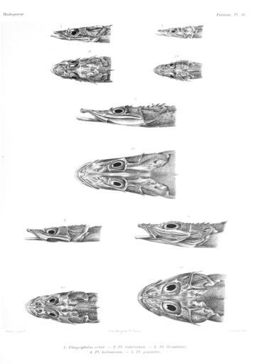 Keywords: GrandidierMadagascarFishes 0083.jpg Platycephalus scaber Platycephalus rodericensis Platycephalus grandidieri Platycephalus borboniensis Platycephalus punctatus Histoire Physique Naturelle et Politique de Madagascar Volume 16 Histoire Naturelle des Poissons atlas http //www archive org/details/histoirephysique16gran web 1885 text Alfred Grandidier 1836-1921 artists various Jobin pd-old-70 Alfred Grandidier Histoire Physique Naturelle et Politique de Madagascar - Grandidier - Volume 16 Poissons Platycephalidae |