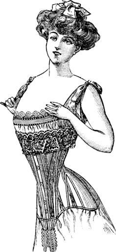Keywords: GrandsMagasinsDuLouvreParisSaisonD'Ete1908a.gif 30513 Hauteur 0<sup>m</sup>32 30513 CORSET droit vraie baleine noir écru on blanc 10 75 En baleine corne 7 90 En coutil broché 8 90 Grands Magasins Du Louvre Paris Saison D'Ete 1908 page 17 PD-old Line art of women in straight fronted corsets Fashion in 1908 Grands Magasins du Louvre |