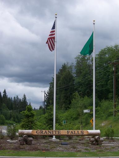 | Keywords: Granite Falls, WA - Entrance sign.JPG en Granite Falls Washington welcome sign with U S and Washington State flags overhead Located in the middle of a roundabout on State Route 92 near the city limits own ECTran71 2011-06-14 Cc-zero Granite Falls Washington Roundabouts in the United States Photographs of flags of Washington state Washington State Route 92 Welcome signs in Washington state | ||||