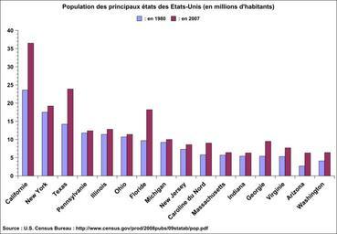 Keywords: Graph evol pop etat USA 1980-2007.svg fr Graphique représentant la population des premiers états des Etats-Unis entre 1980 et 2007 en millions d'habitants Source http //www census gov/prod/2008pubs/09statab/pop pdf U S Census Bureau 2009 Own Urban 2009-04-26 Demographic charts of the United States |