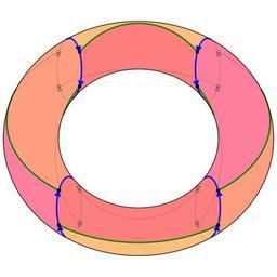 Keywords: GrapheCayley-C2xC2semiC4-Tore.svg Du source XML Un des 9 groupes non-abéliens d'ordre 16 est le produit semi-direct de C_2 2 par C_4 Il a une présentation <nowiki> < a b a 4 b 2 1 a 2 b b a 2 ab 2 ba 2 > </nowiki> On peut dessiner le graphe de Cayley de cette présentation sur une surface de genre 1 qui sera divisée en 8 régions et coloriée avec 4 couleurs 2007-08-31 own assumed Fool~commonswiki Cayley graphs Torus Color in mathematics |