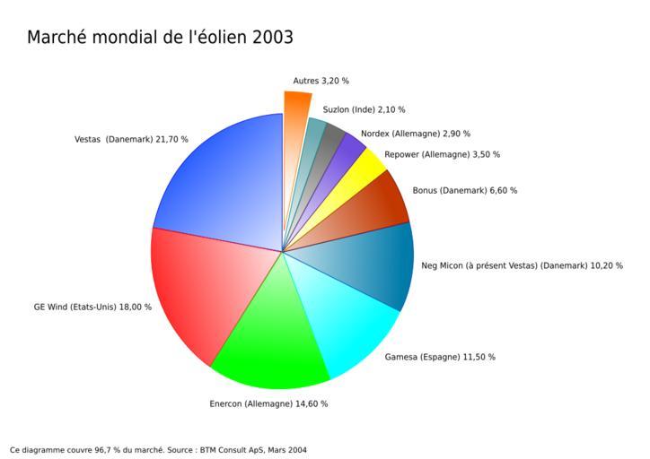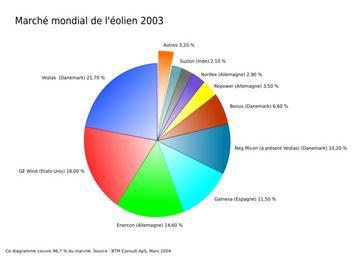 Keywords: Graphique marche eolien 2003.svg Graphique du marché de l'éolien en 2003 Conversion en SVG et traduction à partir de http //fr wikipedia org/wiki/Image Windenergy-marked jpg Original diagram by User Pikarl Conversion et traduction par User Fabien1309 Atelier graphique Unidentified graphs SVG pie charts |
