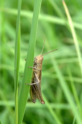Keywords: grasshopper tettigonia viridissima cricket grass insect nature jump closeup green leaf meadow grass polyana blades of grass