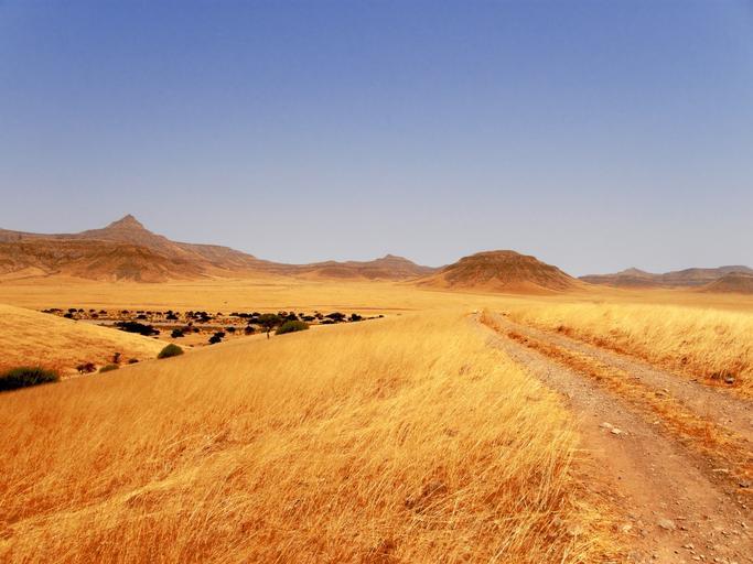Keywords: grasslands track stony rough sand yellow dry mountains yellow grass barren waste stark desolate namibia
