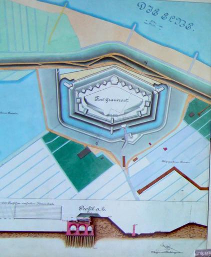 Keywords: Grauerort Plan.png en Grauerort fortress construction plan with vertical profile at the bottom River Elbe is at the top of the map own Morn the Gorn 2010-05-16 PD-Old Festung Grauerort Drawings of buildings in Germany Taken with Canon EOS 50D Maps of Stade |