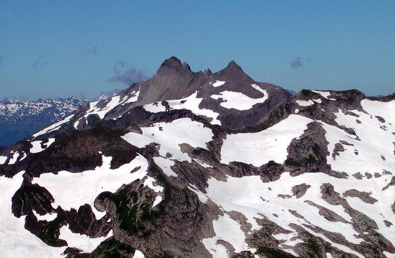 | Keywords: Grauspitzen.JPG en left to right Vorder Grauspitz Rätikon CH/FL 2599 m the highest mountain in Liechtenstein and Hinter Grauspitz also Schwarzhorn 2574m from east de V l n r Vorder Grauspitz Rätikon CH/FL 2599 m höchster Berg Liechtensteins und Hinter Grauspitz auch Schwarzhorn 2574m von Osten own Svickova Grauspitz Rätikon Mountains in the canton of Graubünden Mountains of Liechtenstein Snow in Switzerland | ||||